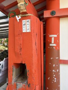 願い事を唱えながら、この柱の穴をくぐり抜けると、願い事が叶うと言われています。