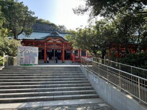 しばらく歩くと、本殿に続く階段が見えてきました。
