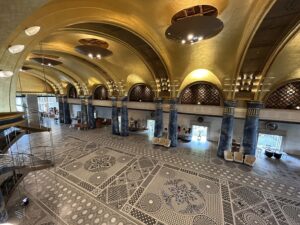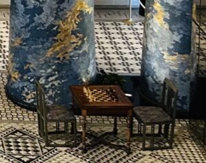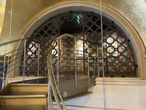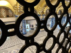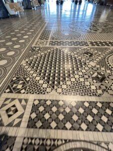 床の模様の幾何学模様はアラビアのモスクを思い起こさて、ヨーロッパっぽい建物の中にエキゾチックなエッセンスが混じっている感じ。